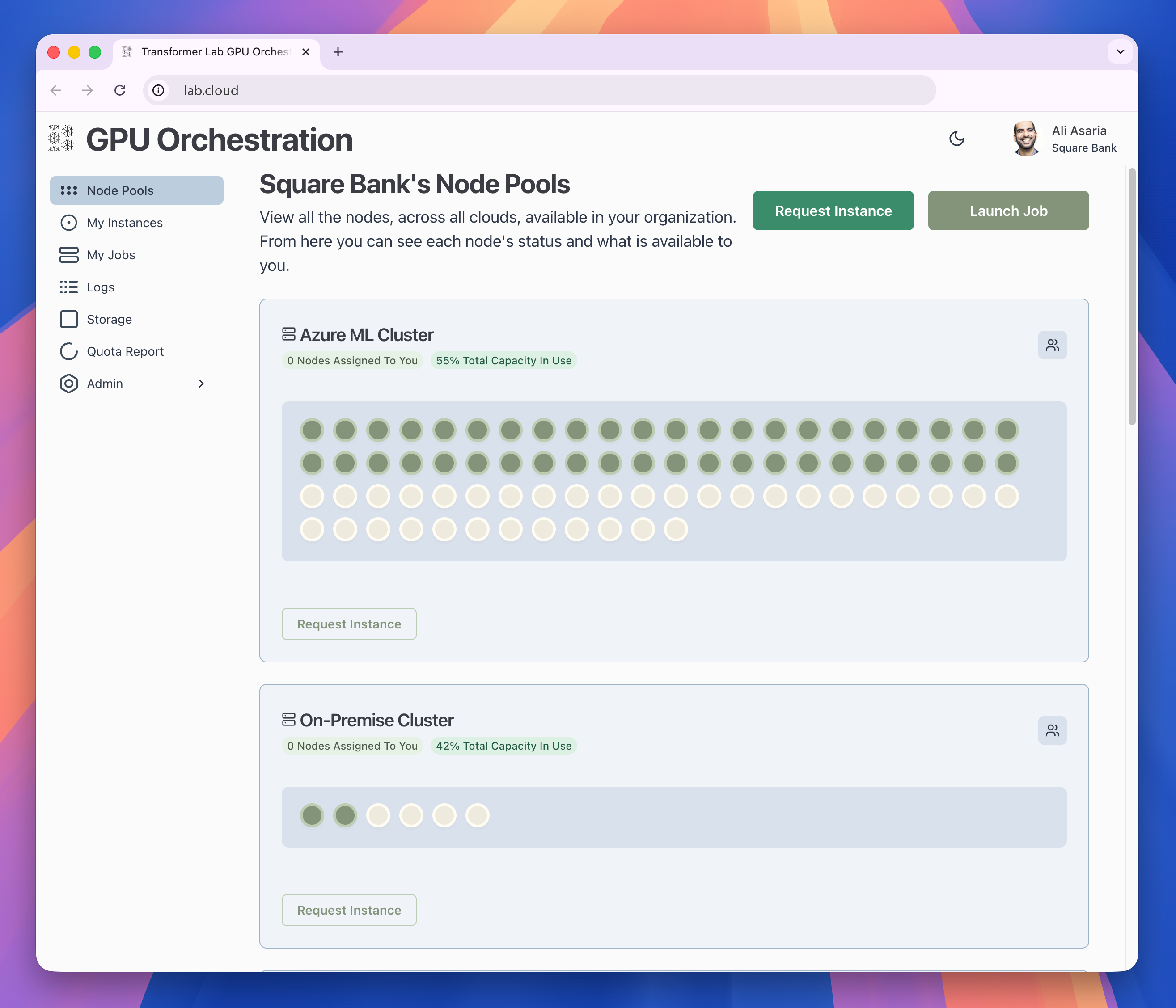 Run jobs locally, on-prem, or in the cloud without re-writing scripts and managing SLURM templates. Designed to handle environments, dependencies, and distributed initialization so you can scale models without setup overhead. Scheduling and telemetry keep GPU usage visible.