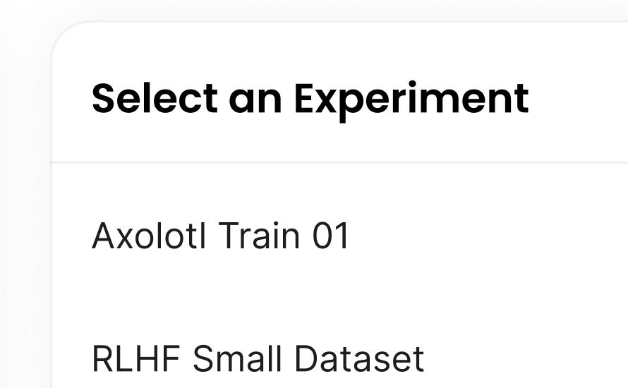 Measure what matters with built-in evaluation tools. Run Eleuther Harness benchmarks, LLM-as-a-Judge comparisons and objective metrics in one place. Red-team your models, visualize results over time, and compare runs across experiments with clean, exportable dashboards.