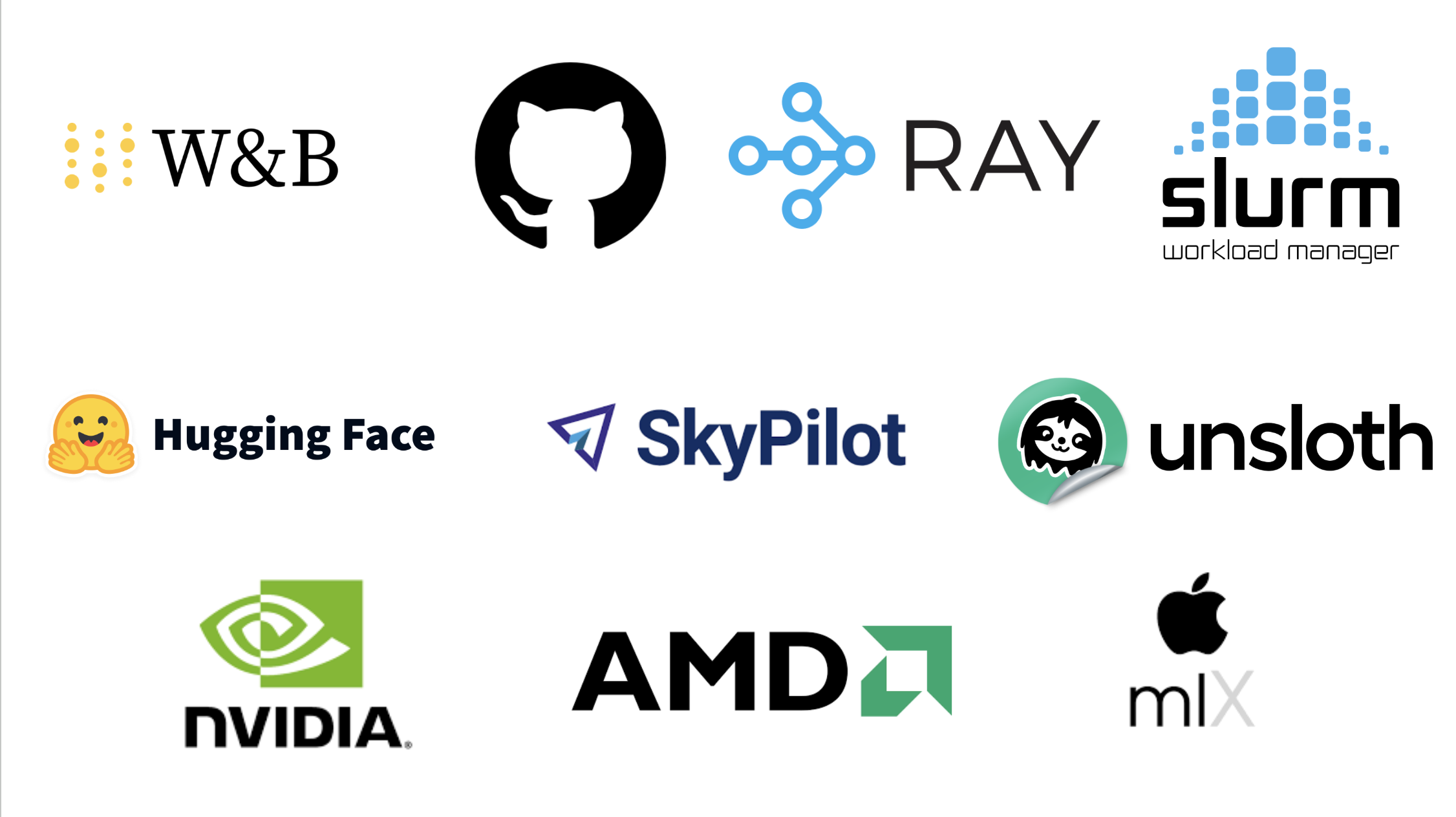 Transformer Lab integrates directly with Weights & Biases, GitHub, SkyPilot, SLURM, and Kubernetes. It provides a flexible, framework-agnostic environment to run Ray, Hugging Face TRL, Unsloth, PyTorch, or MLX tasks on any compute hardware (NVIDIA, AMD, TPUs, or Apple Silicon).