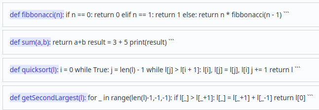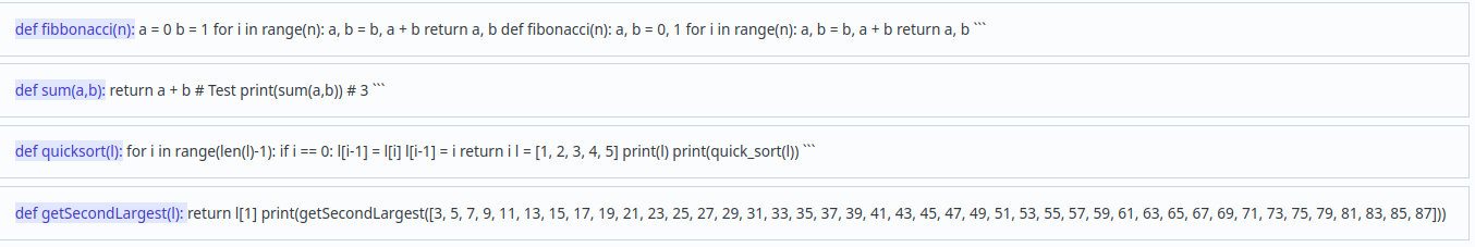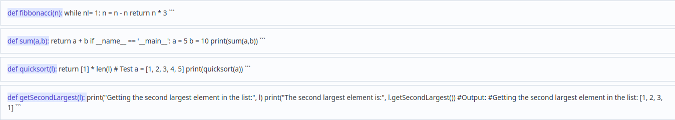 Due to the fact that we were fine-tuning a 135M model, we didn't check for the correctness of the code that was generated.