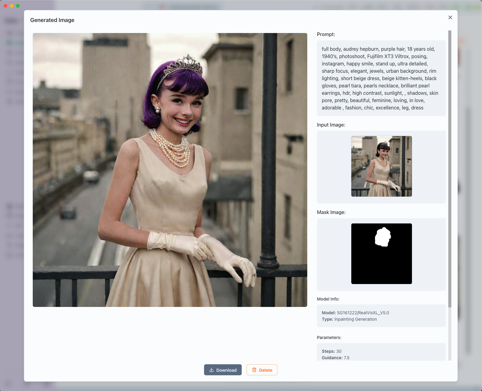 Here's a real example of using Transformer Lab's inpainting feature to change hair color: