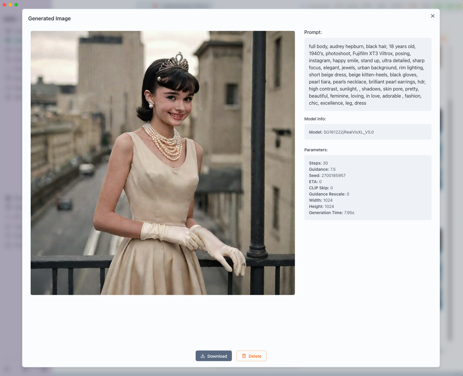 full body, audrey hepburn, black hair, 18 years old, 1940’s, photoshoot, Fujifilm XT3 Viltrox, posing, instagram, happy smile, stand up, ultra detailed, sharp focus, elegant, jewels, urban background, rim lighting, short beige dress, beige kitten-heels, black gloves, pearl tiara, pearls necklace, brilliant pearl earrings, hdr, high contrast, sunlight, shadows, skin pore, pretty, beautiful, feminine, loving, in love, adorable , fashion, chic, excellence, leg, dress