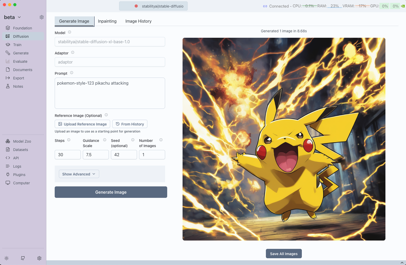 - Save the trained adaptor for use in diffusion workflows